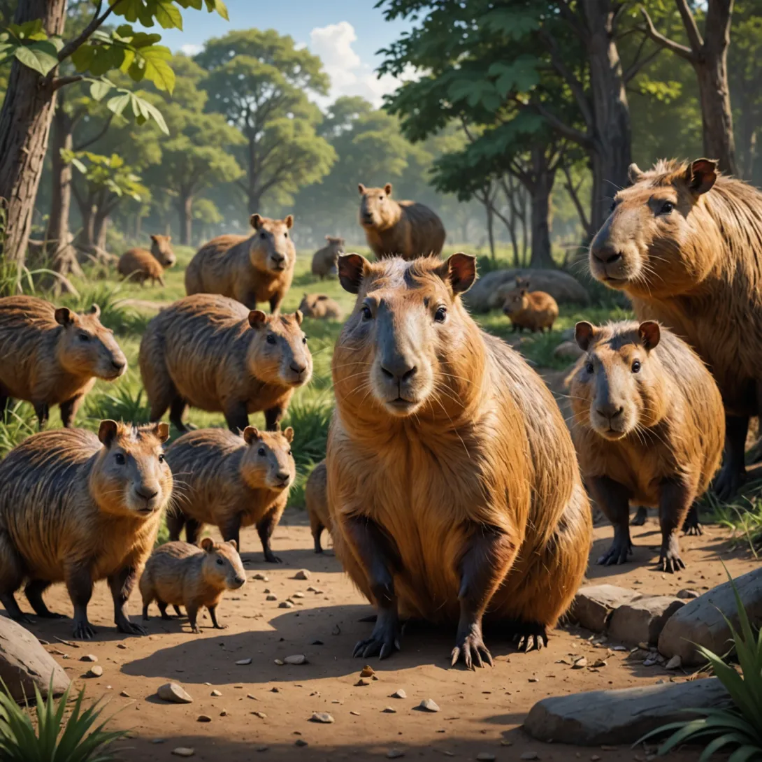 Например, капибара — самый крупный современный грызун, может достигать массы до 65 кг и длины тела до 1,3 метра. Ее особенности включают водоёмный образ жизни и социальное поведение в стаях.