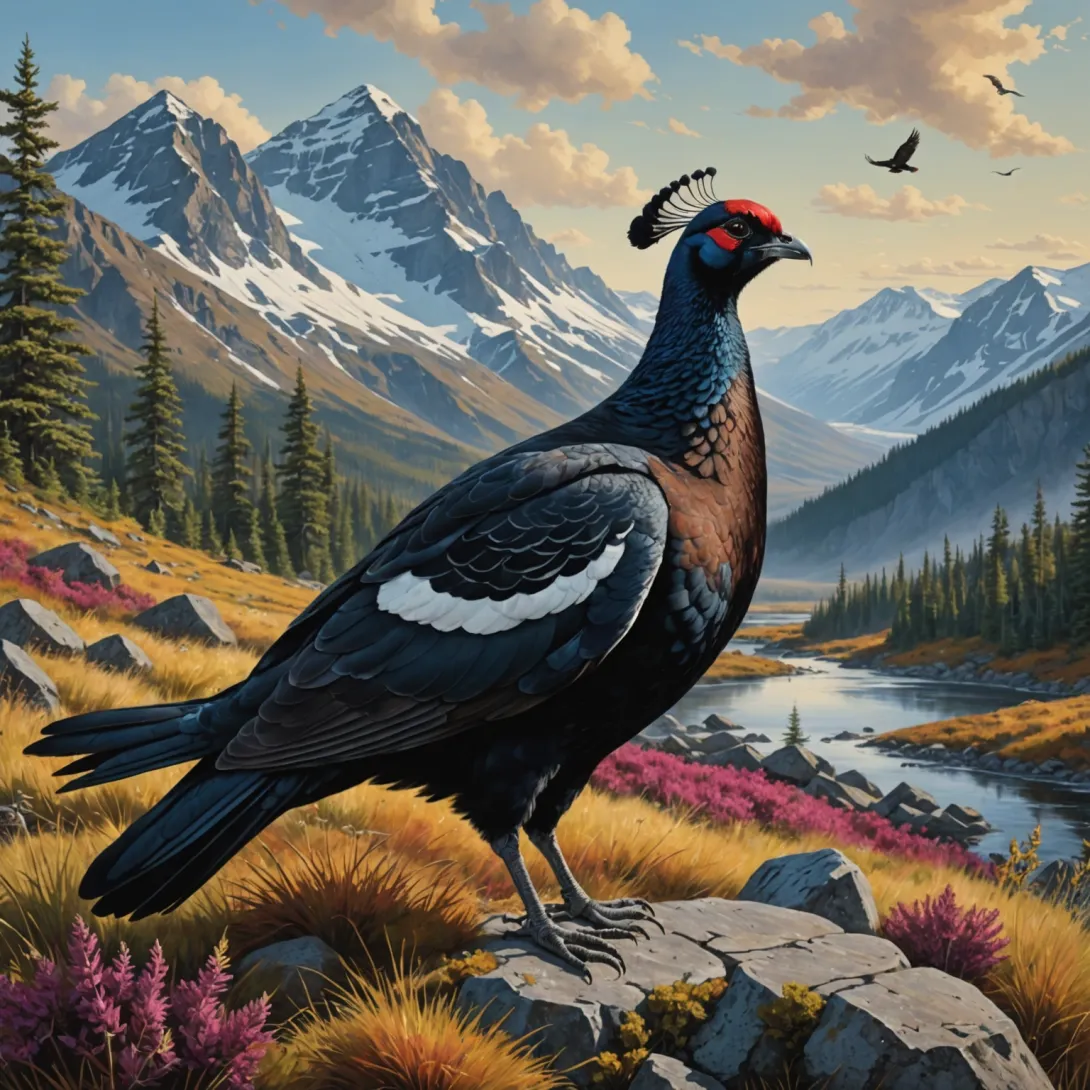 - Тетерев — обитает в хвойных лесах, также заметен своим брачным поведением.